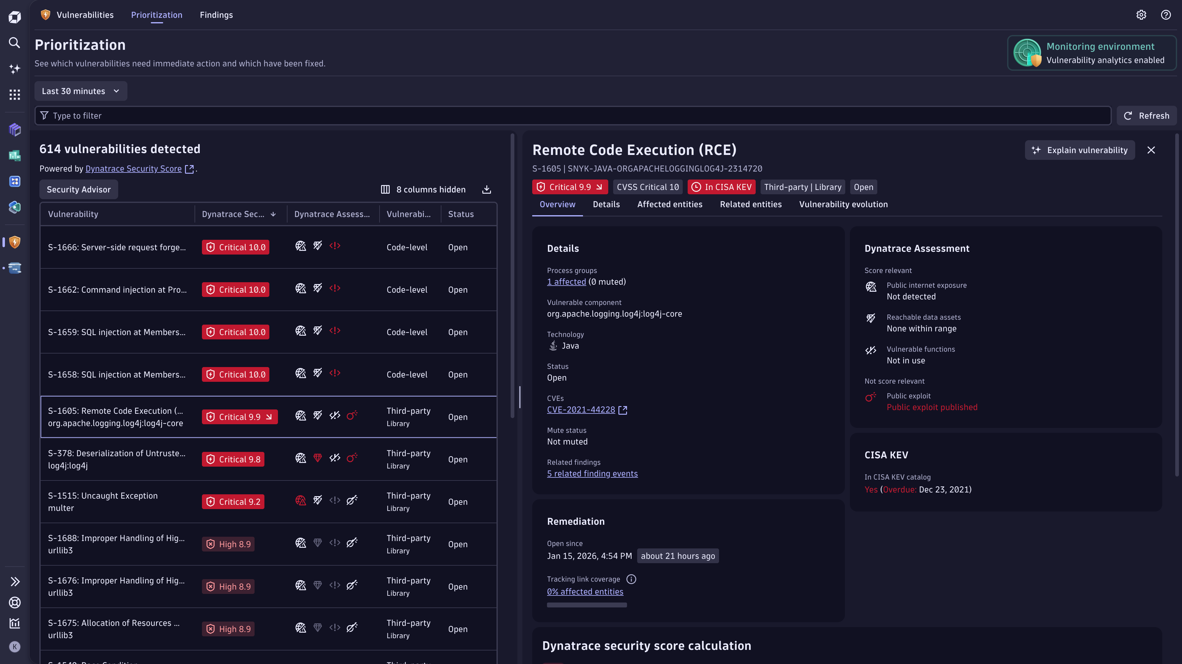 - Auto-prioritize remediation by business criticality or compliance requirements with the deterministic and agentic AI capabilities of Dynatrace Intelligence.